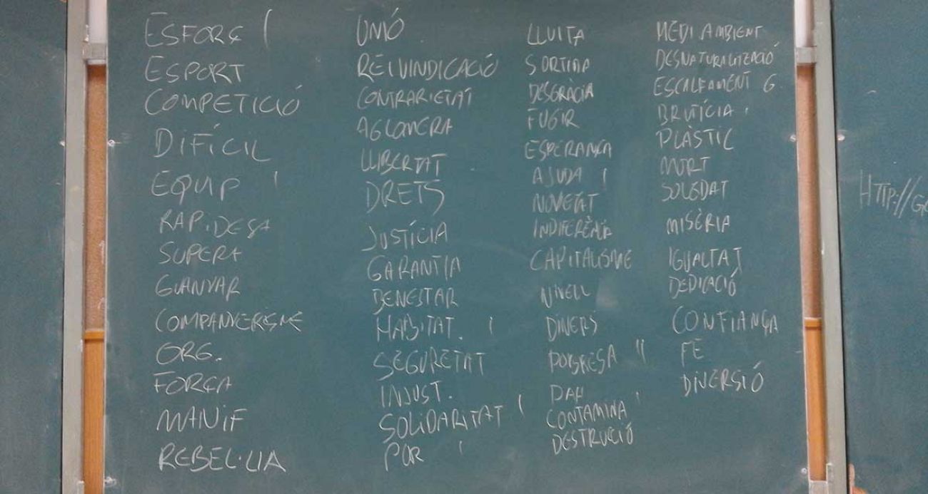 Els grups Slider i Hasthag ha fet una activitat que porta el títol «El Bé comú: Axiologia i valors» que ha estat conduïda per dos estudiants de Pedagogia de la UB, dins el Projecte APS Compartim Idees.