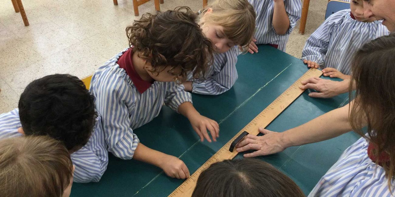Començant a explorar les possibilitats que ofereix un regle, tots van voler provar a fer línies rectes amb el regle a la taula pissarra, i observant-les totes, van descobrir o recordar què són les línies paral·leles i les línies secants.