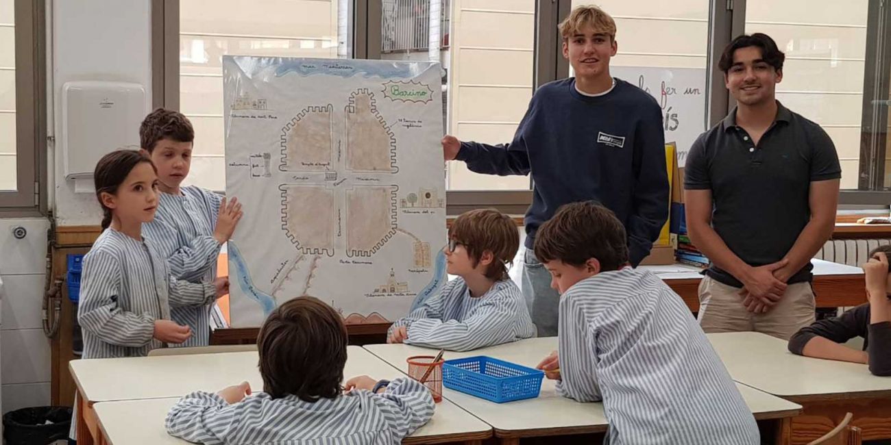 Two @‌hightechhigh students have arrived at the school to carry out their internship program. Today they have been explaining to our students how their high school works. Our students have explained to them the activity of the field trips around Barcelona, which is an experience they will soon participate in.