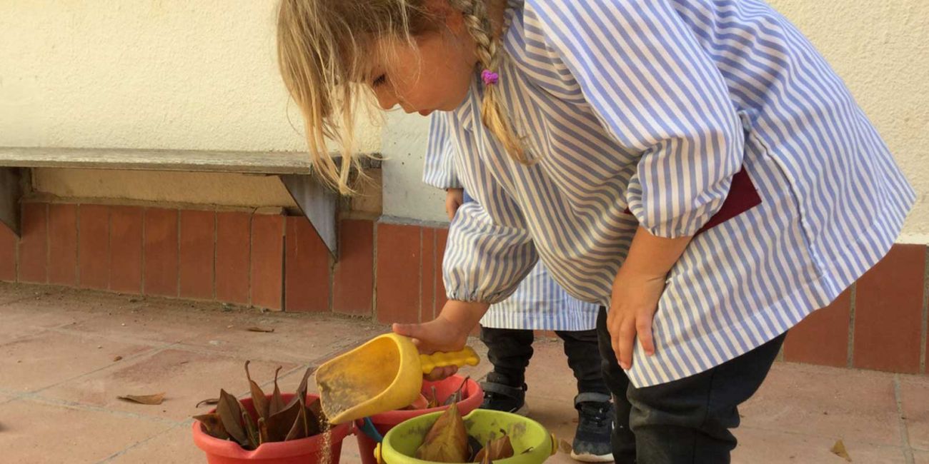 La importància d’utilitzar materials naturals en el joc simbòlic. El Grup Bambú (3 anys) “preparem el dinar” de manera espontànea amb imaginació i creativitat, amb unes quantes fulles, sorra i amb altres materials naturals; una situació de joc ben habitual.