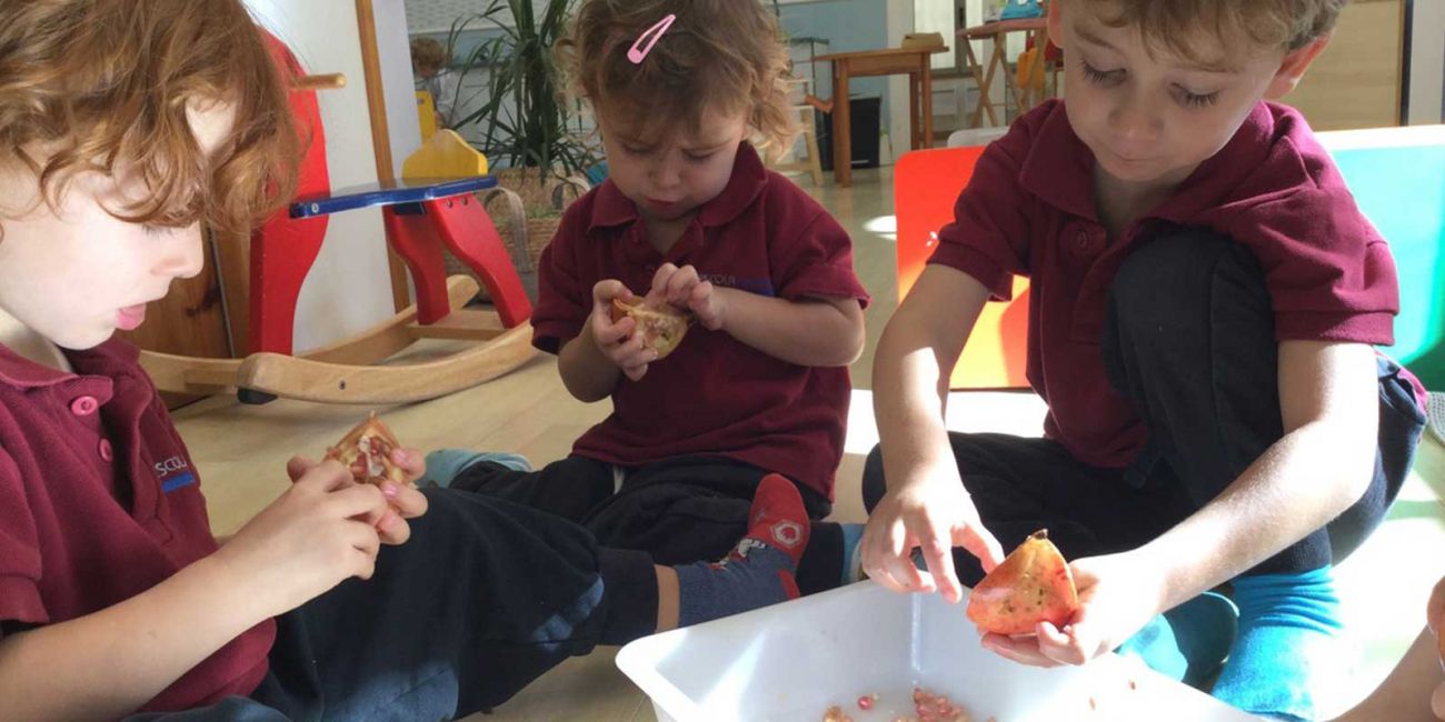 La tardor a més dels seus colors arriba amb els seus fruits i ens dons moltes oportunitats per aprendre a través de l’experimentació i la descoberta d’elements naturals. Al Grup Balena (3 anys) ho hem fet a través d’un fruit, la magrana.