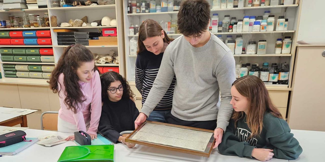 És veritablement una sort que els nostres alumnes més grans de l’Escola puguin portar a terme una consulta paleogràfica d’un document notarial autèntic del segle XIII, que pertany al fons bibliogràfic de la biblioteca.  Amb aquesta aproximació, realitzada dintre dels projectes de llengua llatina,  poden comprovar de primera mà com era el llatí medieval en aquell moment i establir relacions amb les llengües catalana i castellana a l’actualitat.