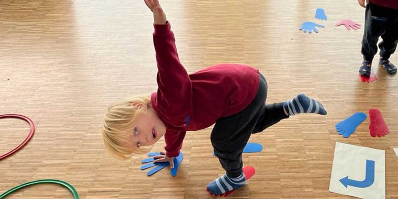 Els nens i nenes del Grup Mediterrani (4 i 5 anys) han jugat amb un circuit d’empremtes i fletxes, a més d’experimentar motriument diferents desplaçaments. En aquest circuit hem atribuït un color a cada lateral del cos (dreta-blau, esquerra-vermell) de manera que han posat a prova la seva lateralitat per seguir les empremtes amb el seu cos de manera correcta.