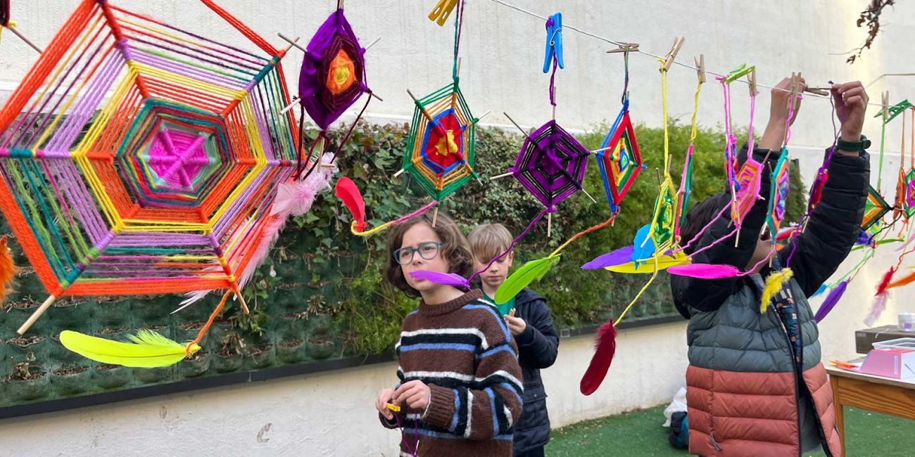 El Grup Escull (8-9 anys), vam decidir fer un viatge artístic per Amèrica del Sud i vam descobrir que en l’antiga tradició mexicana tenien amulets que els protegia, els donava bona sort i alhora, atreia les energies positives d’aquells que el posseïen. Hem creat una obra d’art decorativa, única i artesanal i hem mostrat molta habilitat i creativitat durant l’elaboració transformant aquesta manualitat en un atrapa-somnis.