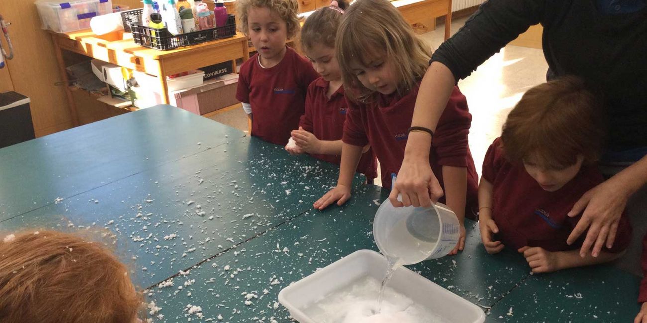 Drac group (5 year olds) have been exploring early science and sensory learning by making artificial snow. Through mixing simple ingredients, children observed changes in texture and temperature, building curiosity about cause and effect. This hands-on activity encouraged language development as they described what they saw and felt, while also strengthening fine motor skills. Learning through play like this helps young children develop problem-solving skills and a love of discovery.